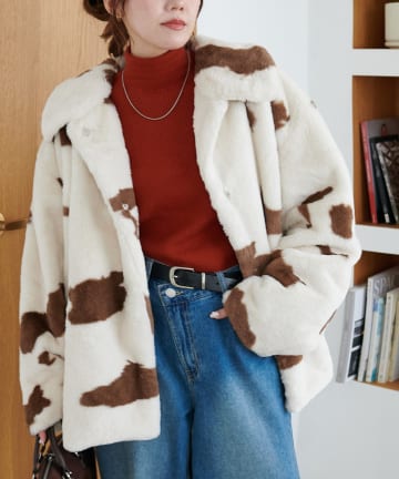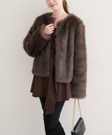 【SALON by Chico】袖ボリュームアニマルファーショートコート
