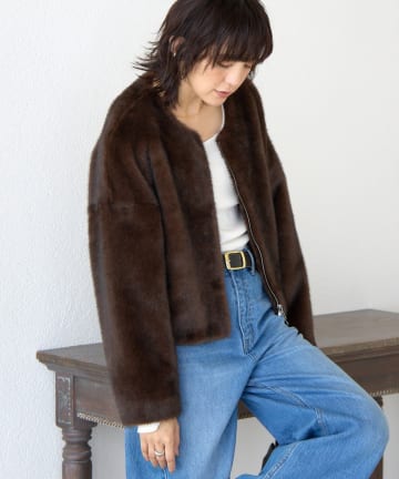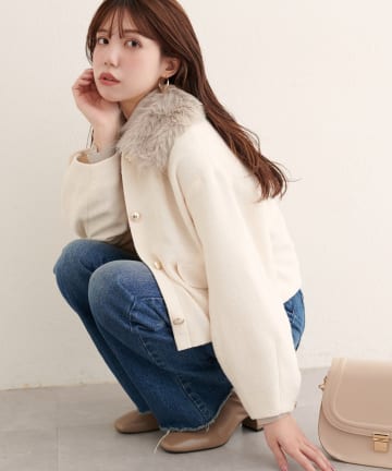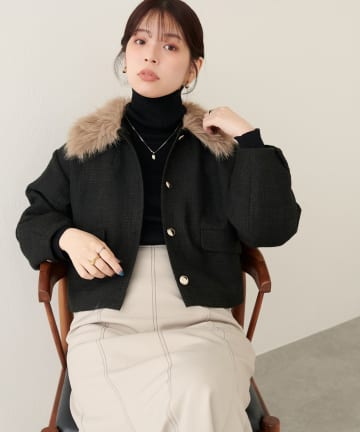 【etsinta】ファー切替ショートスタンドジャケット/WEB限定カラーあり