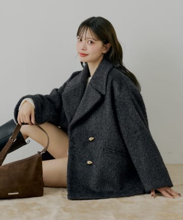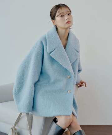 【アウターフェア_B対象】金釦シャギールーズコート※WEB限定カラーあり