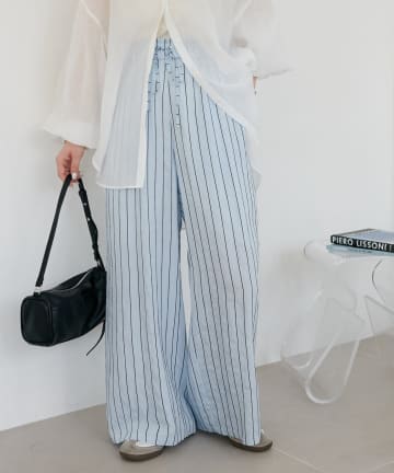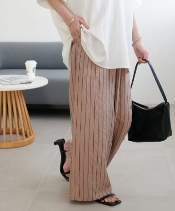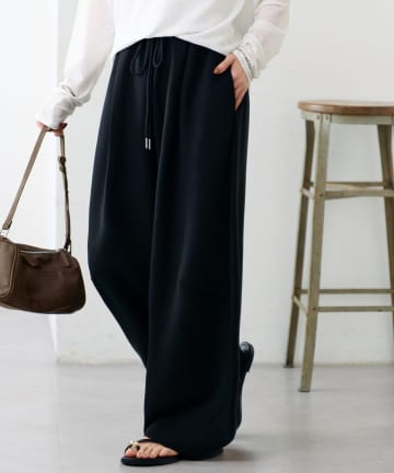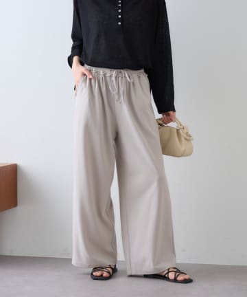 リネンタッチストレッチイージワイドパンツ