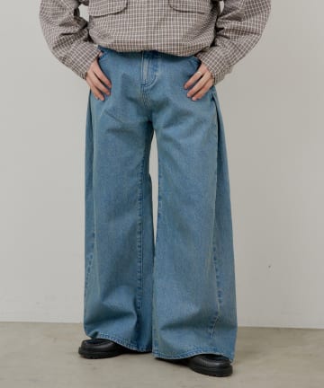 【3サイズ】デニムタックワイドパンツ