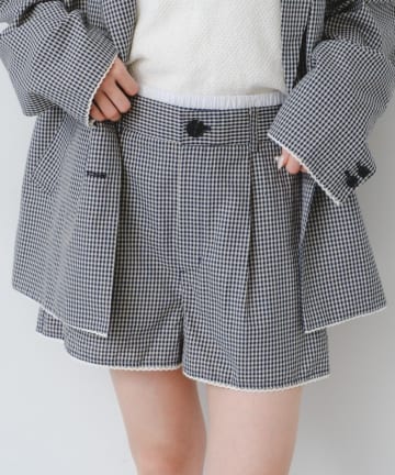 【2.12 0:00~ +10%ポイントUP/セットアップ対応】ピコレースチェックショートパンツ