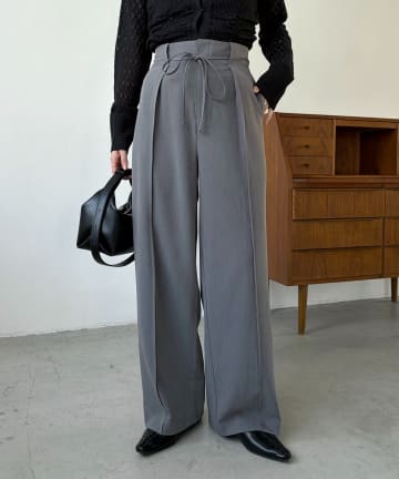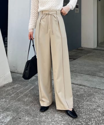 【低身長サイズあり】ピンタックリボンパンツ