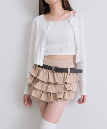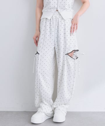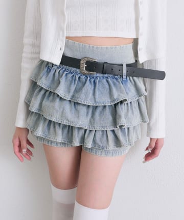キラキラサイドスリットストレッチフレアデニムパンツ