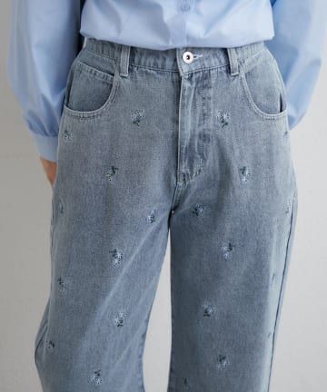【動くたび、キラキラ輝くストーンが主役】キラキラセミフレアデニム