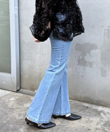 【動くたび、キラキラ輝くストーンが主役】キラキラセミフレアデニム