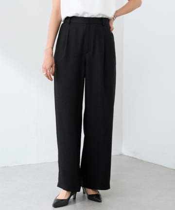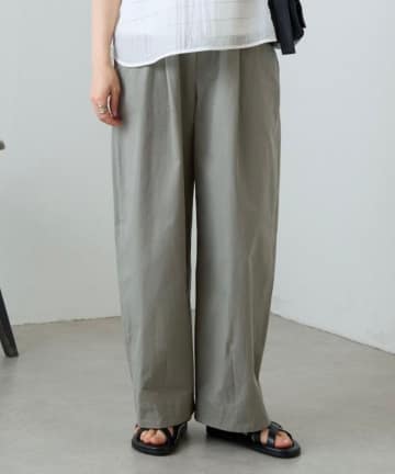【セットアップ可能】リネン混タックワイドパンツ
