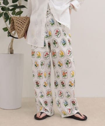 【nane】【軽い素材感のインド綿使用】ドット柄刺繍パンツ