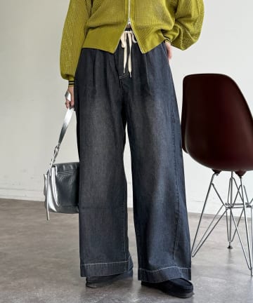 麻混デニムイージーパンツ