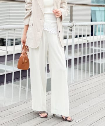 《セットアップ対応》ウォッシャブルハイスペック麻調愛されセミワイドパンツ