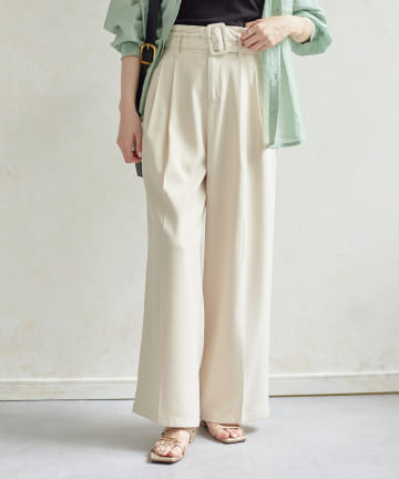 【全骨格細見え】ベルト付きハイウエストタックパンツ