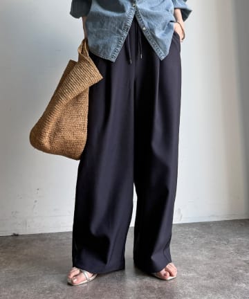 《セットアップ対応》ウォッシャブルジョーゼットタックパンツ