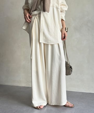 《セットアップ対応》ウォッシャブルスラブオックスタックワイドパンツ