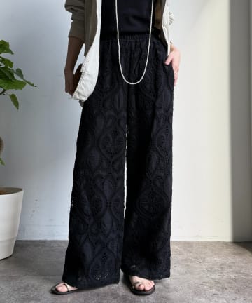 【WEB限定】フラワーコードレースイージーパンツ