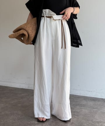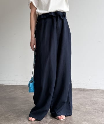 ウエストギャザーリネン混パンツ