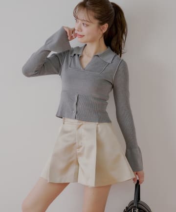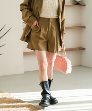 【Chico】ベルト付ボリュームサテンショートパンツ