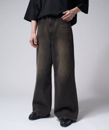 【UNISEX/サイズ展開あり】スラッシュポケットブラストワイドデニム
