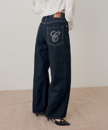 ラインストーンロゴワイドデニムパンツ