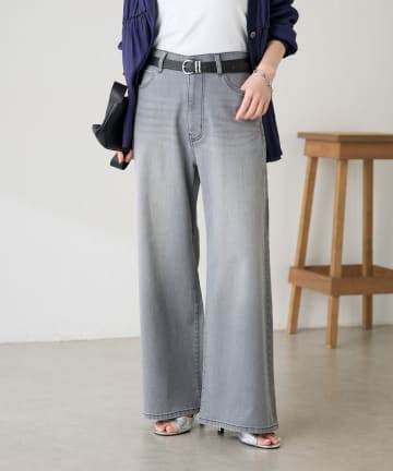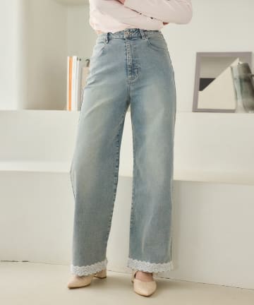 【ウエスト調整可】レースポケットワイドデニム/SMサイズ展開あり