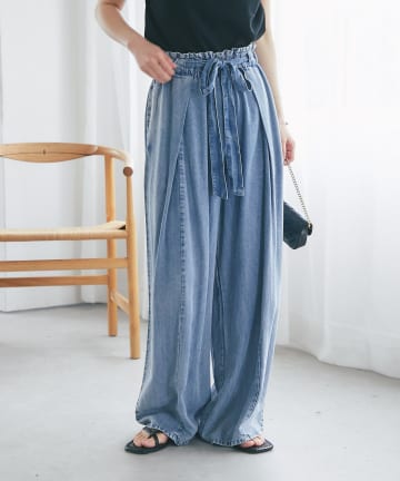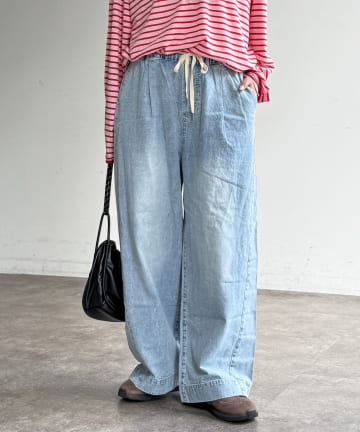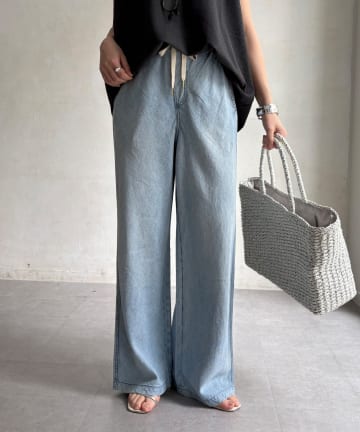 麻混デニムイージーパンツ