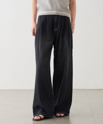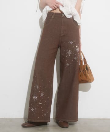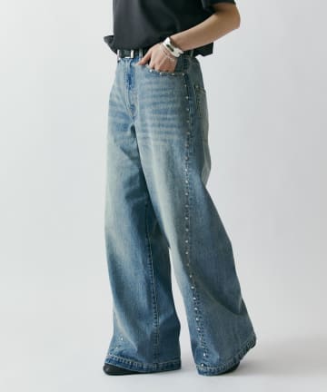 スタッズ/ワイドフィットデニムパンツ13.5oz