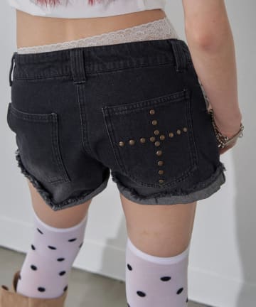 ポケ切り替えデニムショーツ(レース・ドット)