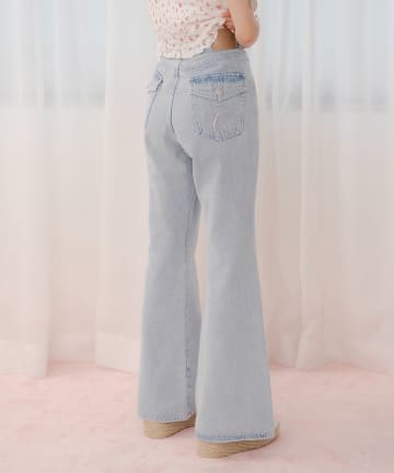 ロゴ刺繍フレアデニム