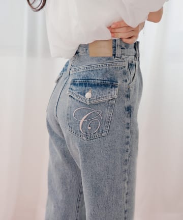 ポケットデザインワイドデニム