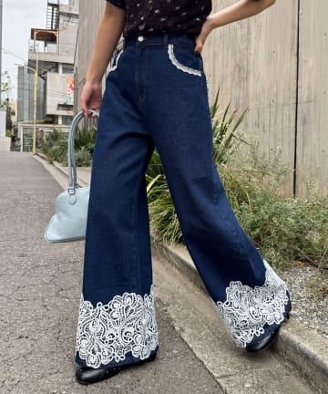 【SMサイズ展開あり】レース付きワイドデニムパンツ