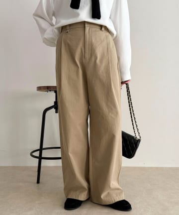 【美脚/腰回りカバー】タックワイドチノパンツ