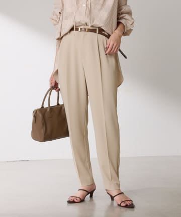 【全骨格細見え】ベルト付きハイウエストタックパンツ