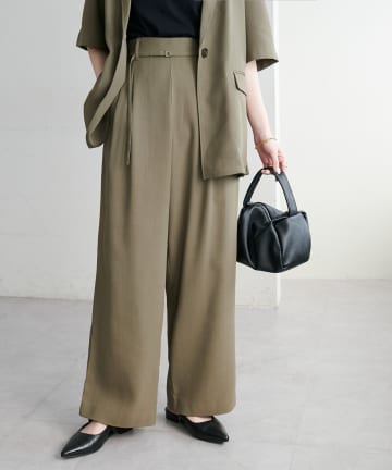 《セットアップ対応》ウォッシャブルドライシャークタックワイドパンツ