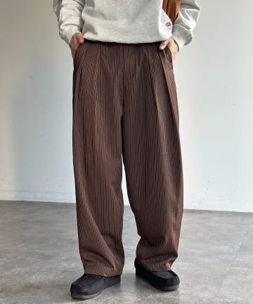 【WHIMSIC】シアーサッカーストライプ ルーズフィットイージースラックス