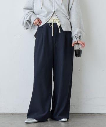 【3サイズ展開】ダブルウエストワイドイージースラックス