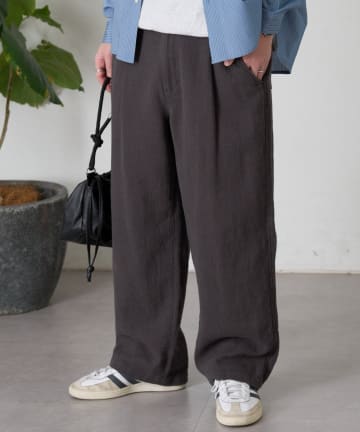 【接触冷感/5サイズ展開】テックリネンウエスト紐ベルトワイドイージースラックス