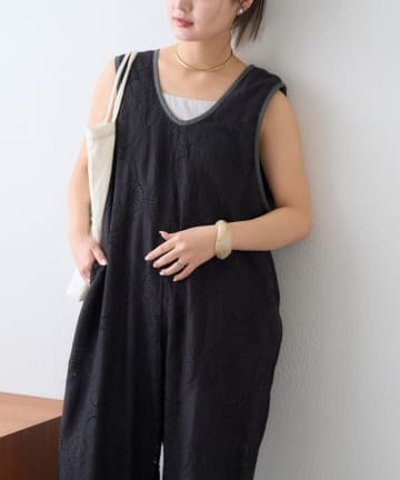 【Aguni】綿麻裾刺繍サロペット