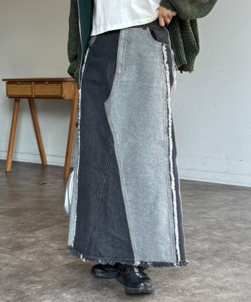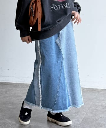 フリンジリメイクデニムナロースカート