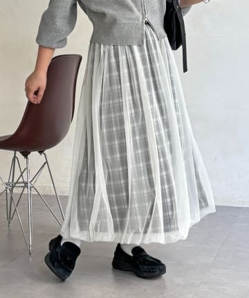 チュールチェックバルーンスカート