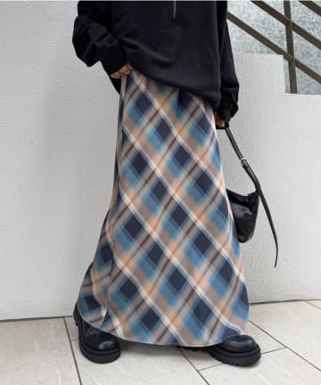 【チェック柄登場/華奢見えが叶う】スタイルアップサテンスカート
