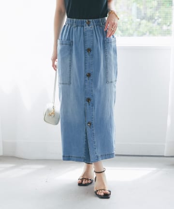 【2サイズ展開/低身長サイズ】ポーチデニムロングスカート