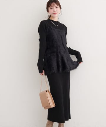〈osono〉ラメフェザーニットベスト×リブワンピース