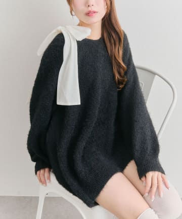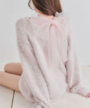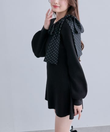 肩リボンドロストニットワンピ