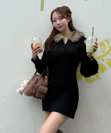 フワフワケーブルニットワンピ