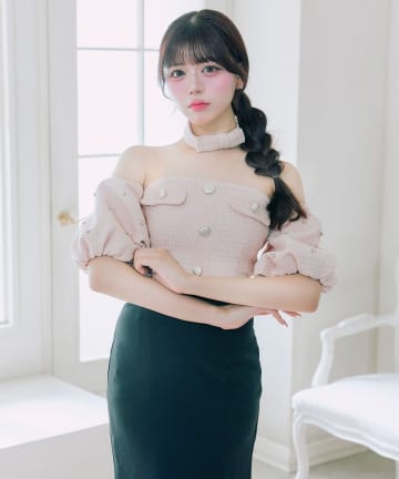 【Belle Charme】レースアップオフショルニットワンピ