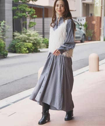 《主役級アイテム◎》ストライプマーメイドシャツワンピース