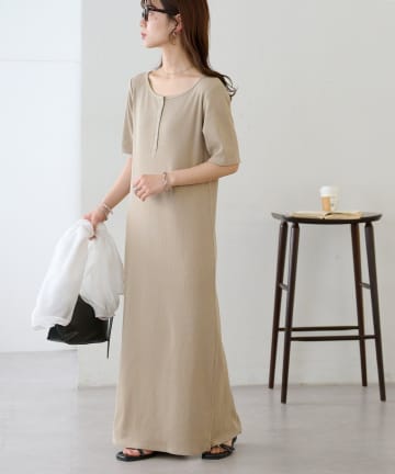 リブリングドットヘンリーカット半袖ワンピース【WEB限定カラーあり】