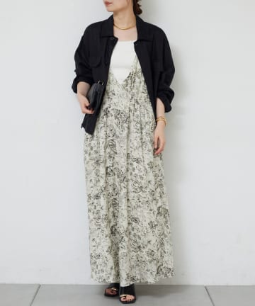 ボタニカルサテンディープVキャミワンピース