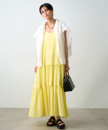 【すぐにお届け!】肩リボンティアードキャミワンピ
