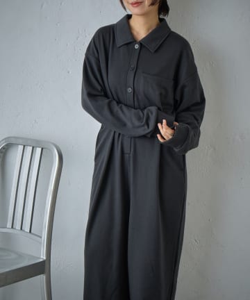 テレコ衿付きロングワンピース