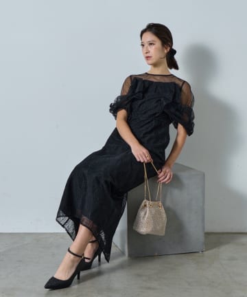 【オケージョン/サイズ展開あり/人気につき再販】チュールハイネックワンピース